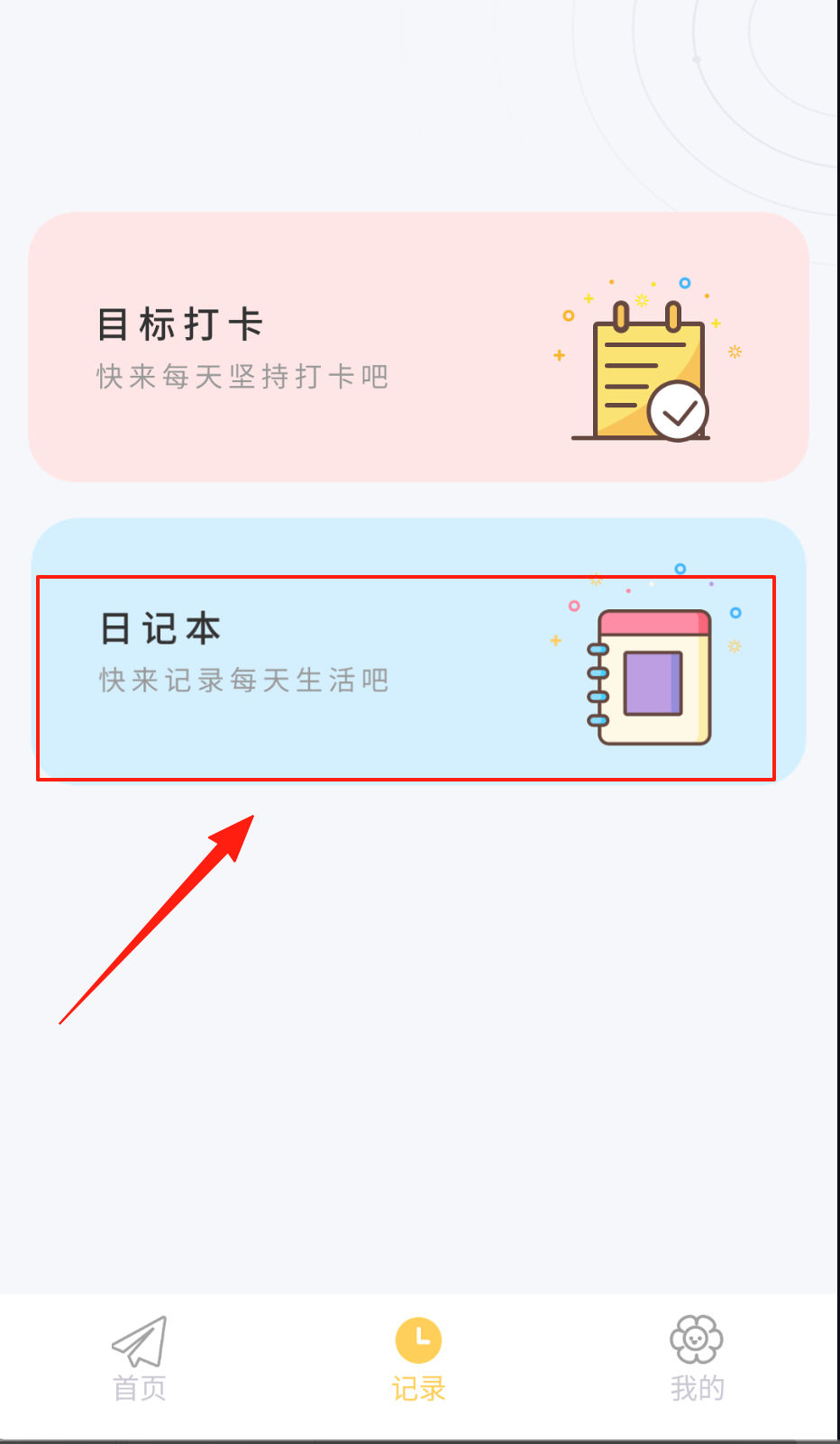 1、进入iCity我的日记,点击记录页面。