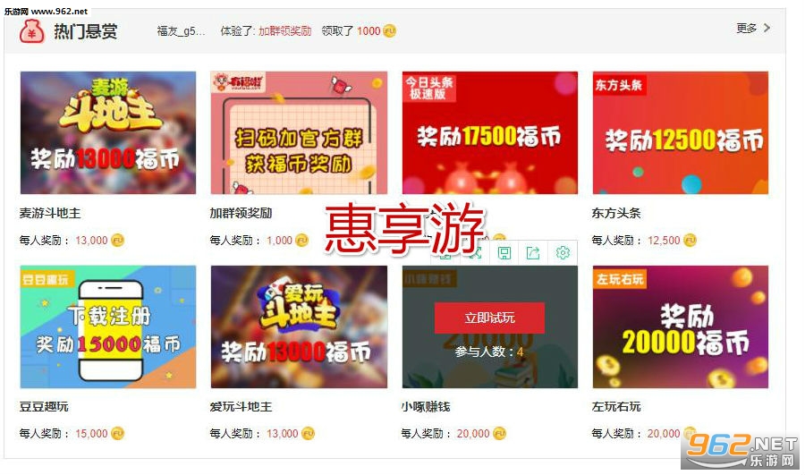 《惠享游》是一款全新上线的试玩赚钱应用,用户可以在这里体验到玩游戏赚收益的乐趣。平台提供丰富的任务和多元的赚钱方式,悬赏奖励十分丰厚,还能通过邀请好友获取更高收益,感兴趣的朋友欢迎前来体验!