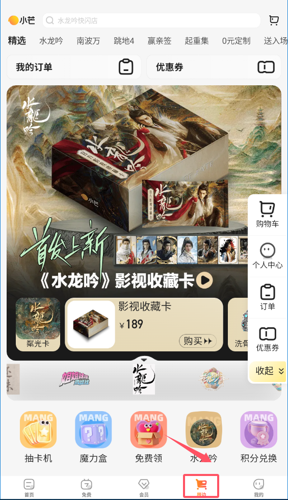 1、在购物专区能看到影视周边、收藏卡之类的商品推荐。商品信息涵盖价格、图片等详细内容,便于大家了解商品的具体情况。