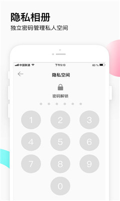 加密隐私:相册锁——用密码或手势加密你的图库,避免私人照片外泄,为你的小秘密提供完美守护!还有加密通道可安全备份!