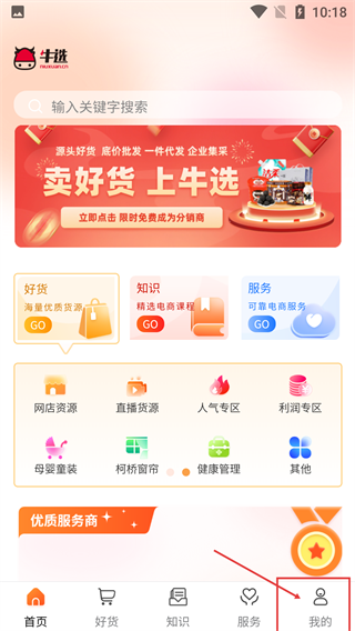 1、在【牛选】首页底部找到并点击【我的】按钮,即可进入个人中心页面,在这个页面里能够访问账号、订单等各类功能的入口。