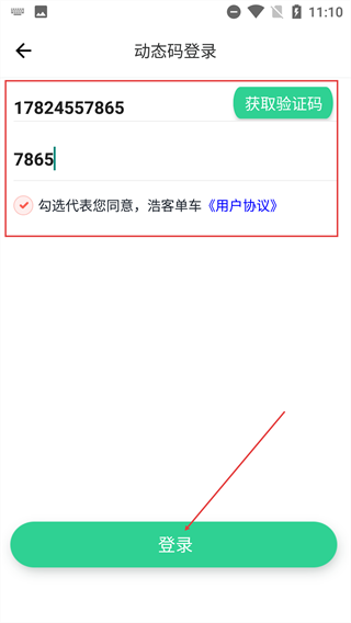 4、在【动态码登录】页面输入手机号,获取并填写【验证码】,勾选相关协议后点击【登录】按钮,即可完成账号登录操作。