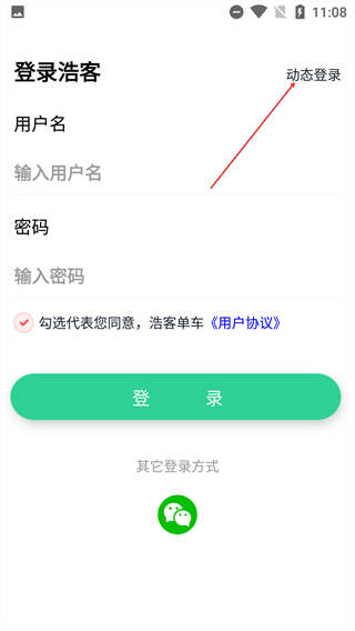 在登录页面,用户既可以选择通过用户名和密码进行登录,也能点击【动态登录】按钮切换到验证码登录模式,此外还支持微信登录这一选项。