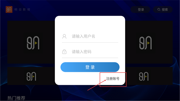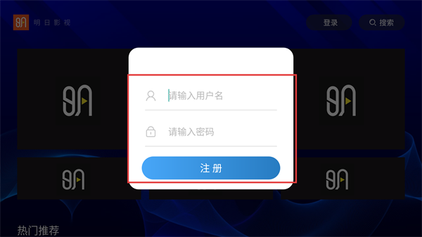 1、进入【明日-影视】首页,顶部设有【登录】与【搜索】按钮,页面下方呈现【热门-推荐】板块,可浏览相关内容。