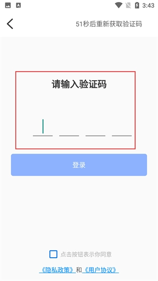 4、进入验证码输入页面,填写收到的验证码,点击【登录】按钮,即可完成账号登录的操作流程。