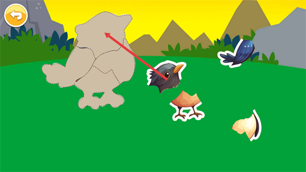 4、进入拼图关卡后,将散落的动物部件拖拽至对应轮廓位置,完成动物形象的拼接即可通关。