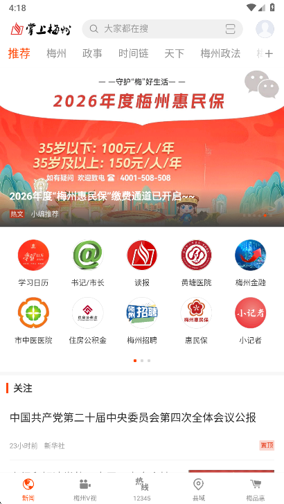 1、在本站安装掌上梅州应用并打开,进入首页后即可浏览到系统推荐的各类资讯动态