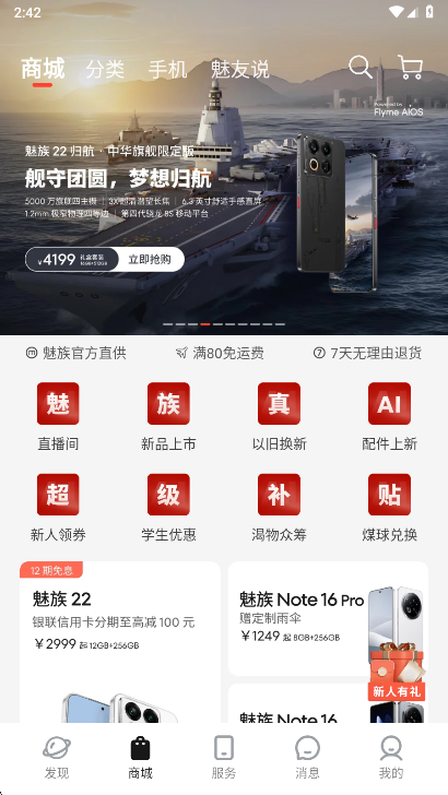 2、进入商城页,用户可以浏览到全面的魅族产品