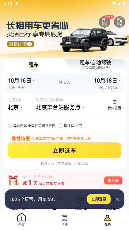 首日0租金新人专享券,让你的首次体验无后顾之忧