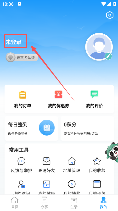 2、接着点击未登录