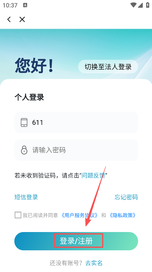 3、在页面填写好相关信息后点击登录/注册按钮,软件便会自动完成注册流程