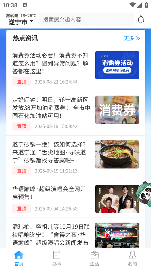 遂宁通是一款城市服务掌上平台,它以数字化为纽带,深度融合政务办理与各类服务,市民足不出户就能在线完成社保查询、医院挂号等高频事项;平台还设有专属新闻版块,方便用户实时了解本地新闻动态与活动资讯,有需要的朋友赶紧行动起来吧!