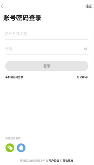 1、在本站安装并运行白山在线安卓版,可通过手机号加密码、微信、QQ等方式登录;