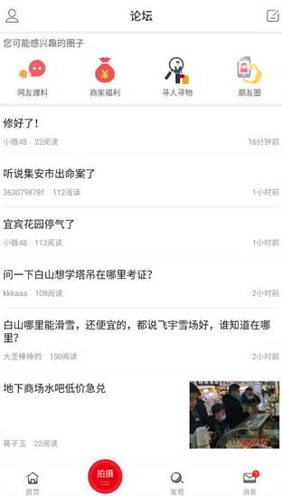 3、论坛里设有网友爆料、商家福利、寻人寻物、朋友圈等板块,还汇集了不少新闻趣事;
