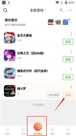 1、点击软件中“启动游戏”中查看到自己完成的游戏,接着点击“启动”即可运行游戏;