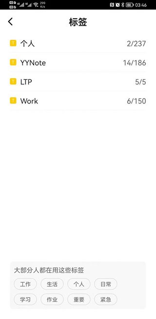 2、触摸或点击任意空白区域,即可添加标签。您也可以直接选用我们推荐的标签,触摸或点击推荐标签,该标签就会被添加为分类标签,用于对代办事项、随笔和日程进行分类。