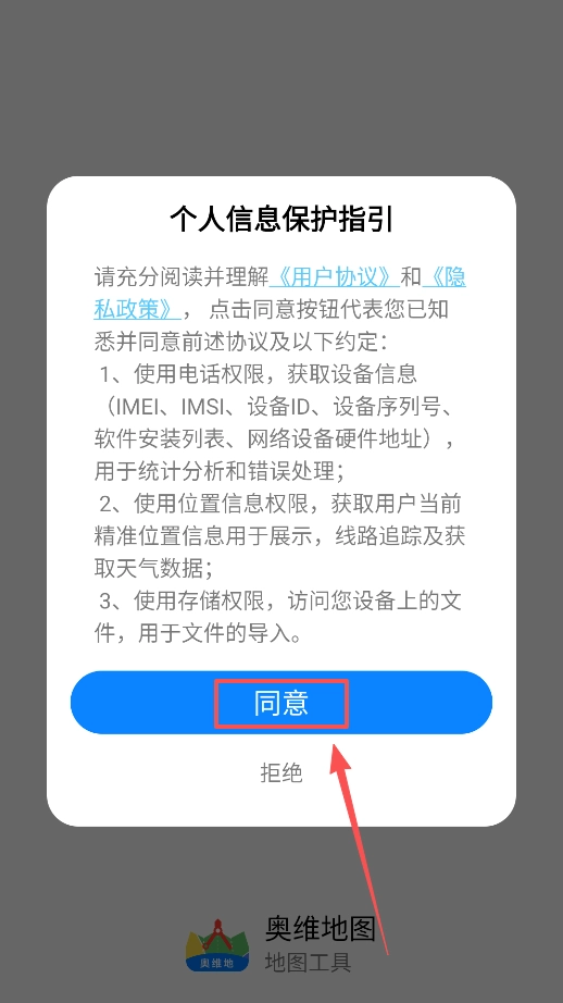 1、打开软件同意相关的协议规定