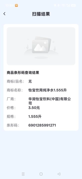 3、扫描结果将会显示展示,包括:商标名称、厂商、价格以及规格等,非常详细的说明。