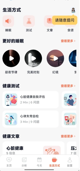 3. 个性化生活建议结合健康数据与用户输入的生活习惯(如饮食、运动),AI生成定制化改善方案,例如“今日补水提醒”“压力舒缓呼吸指导”,助力科学调整日常行为。