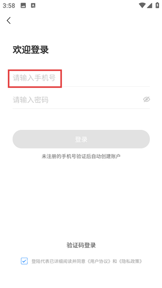 在密码登录界面的对应输入框中填写目标手机号码,以完成账号信息的基础录入。