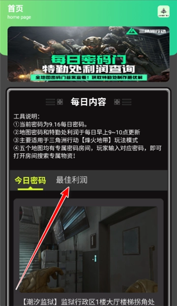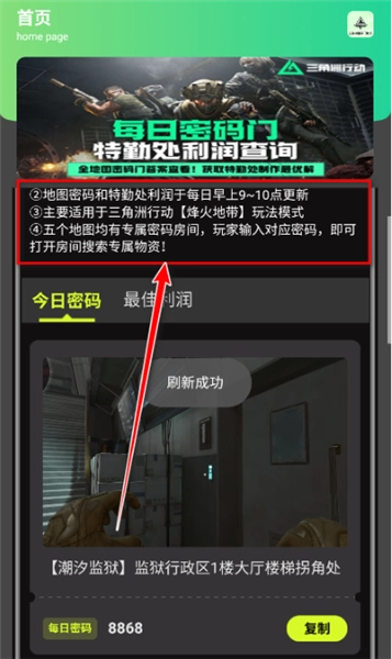 2、地图密码与特勤处利润数据会在每日早上9:00到10:00期间定时更新,以此保证信息的准确性与及时性。该工具的核心服务对象为《三角洲行动》中的【烽火地带】玩法模式。