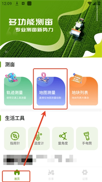 1.打开软件进入【首页】,找到“土地测量”并点击