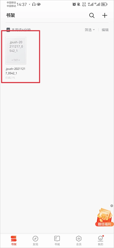 3、导入成功后,在书架中就可以阅读啦