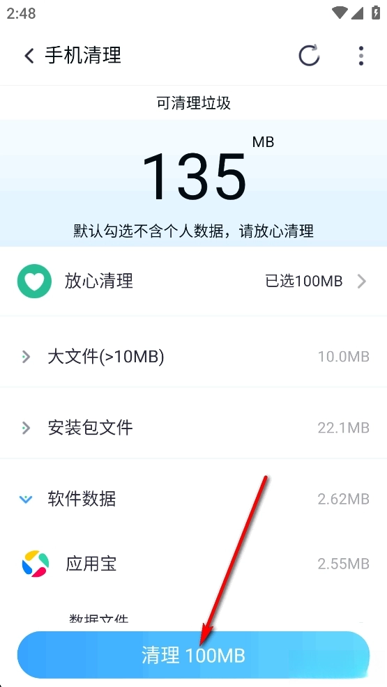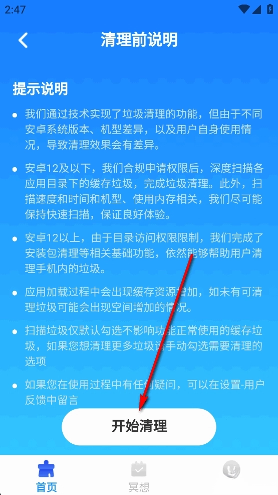 《万能垃圾清理》是成都塞涅信息科技有限公司开发的手机垃圾清理应用,具备视频清理、大文件清理、根目录清理等多样化清理功能,支持一键扫描并清理手机内的垃圾数据,帮助释放手机内存、优化运行速度,让设备告别卡顿问题;此外,软件还提供冥想、体重记录等实用功能供用户使用。