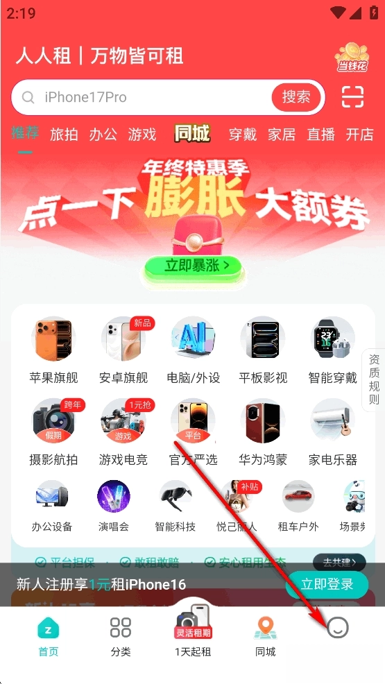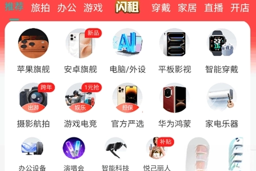 大疆pocket3、苹果iPhone16、华为MateXT折叠屏手机、联想拯救者游戏本、iPad、苹果viosionPro、宇树机器人、iWatch等爆款新人可享1元租福利。