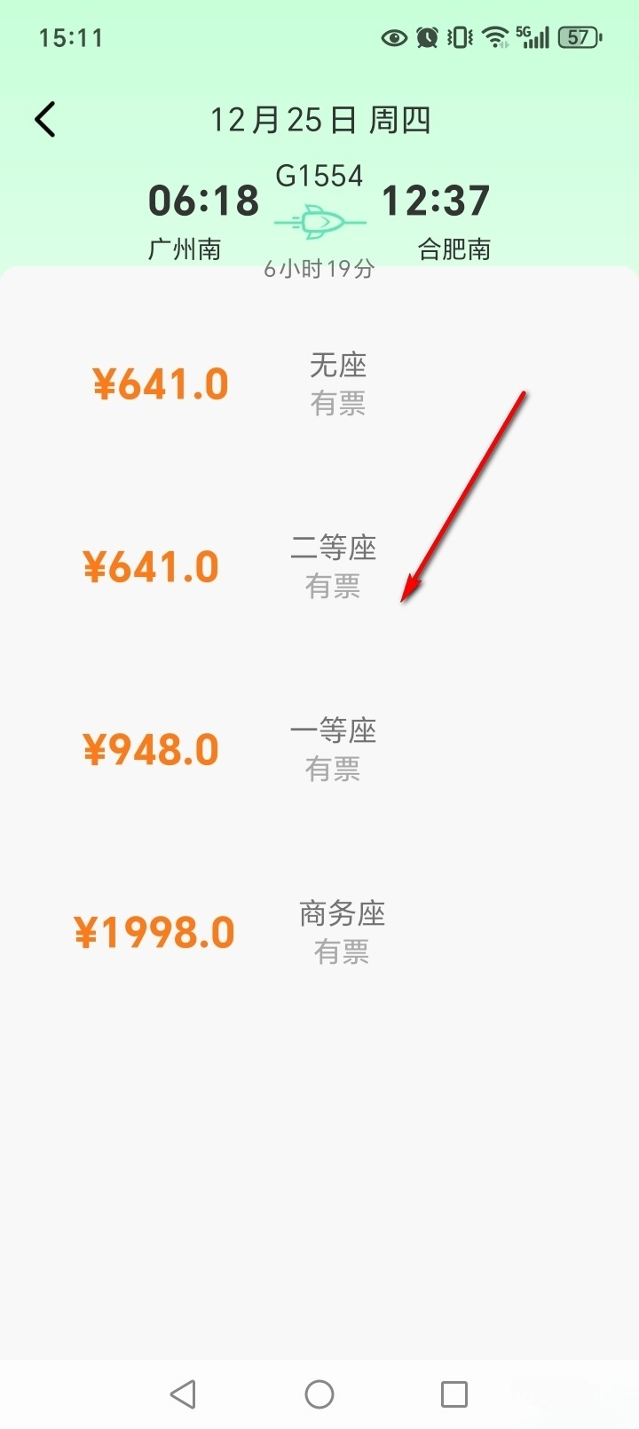 查看车次余票和价格