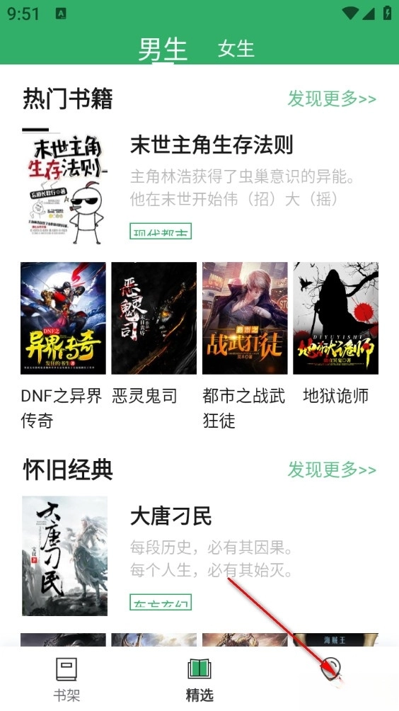 【快速定位目标书籍】提供男频、女频、完结、人气等分类标签,方便用户按题材筛选内容;