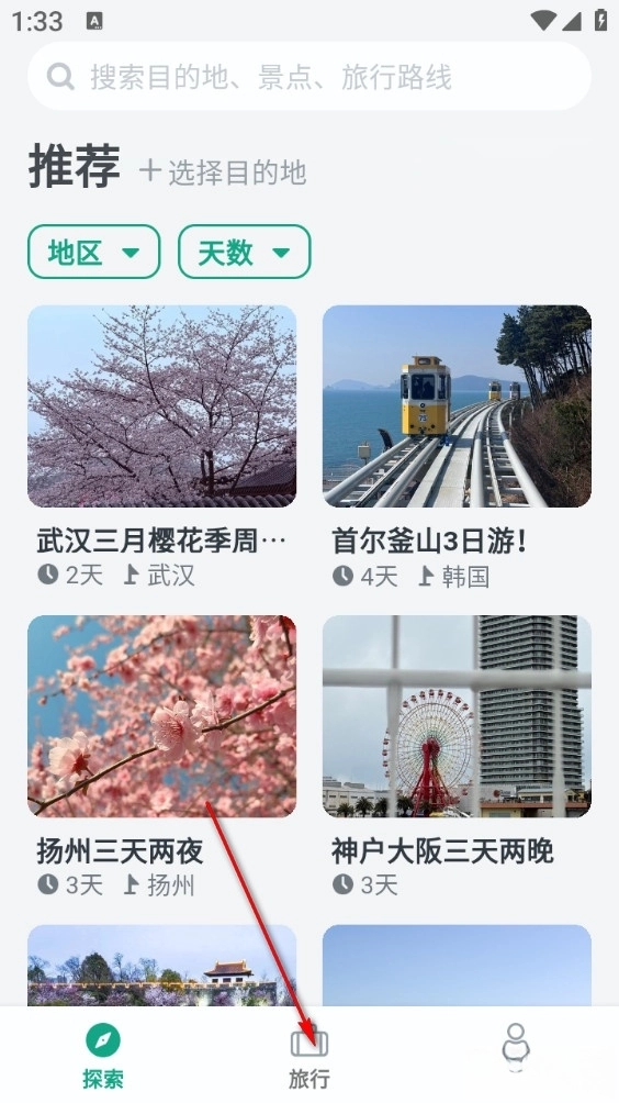 3、要是不清楚该去哪里旅行,不妨从上面的旅行攻略以及他人的打卡分享里找寻灵感。