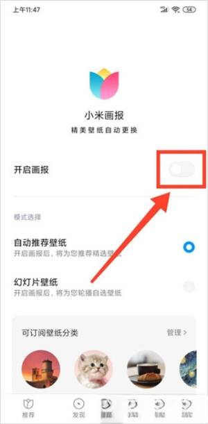 4、找到“开启画报”后,点击旁边的“开启键”画报就开启成功了。
