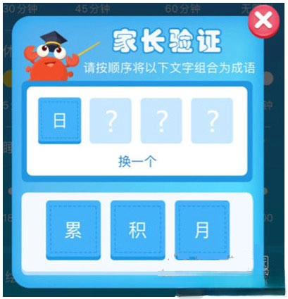 2.点击右上角的齿轮图标进入设置页面时,需完成家长验证步骤。