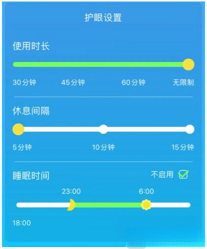 3.在设置页面能够对休息间隔与睡眠时间进行调整,同时可以开启护眼模式。