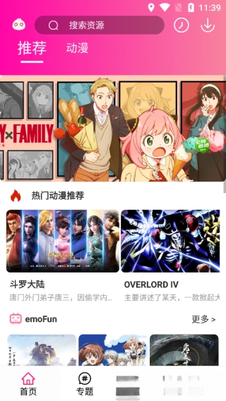 emoFun是一款面向安卓手机用户的免费影视播放软件,主打动漫资源观看服务,全程无需付费。安装后能为用户带来的纯净追剧体验,只需注册账号就能成为永久会员,无论何时何地都能沉浸追番,还可轻松观看4K画质的动漫视频。