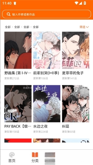 3. 设定题材类型、题材、连载状态等标签,以此筛选出同类漫画。