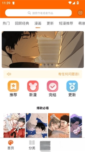 2. 来到分类界面会为你推荐很多精彩漫画。