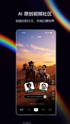 这款应用不只是简单的工具,更是围绕AI视频创作构建的社交平台。用户能在这里分享自己的作品、参与各类互动,既能激发创作灵感,也能找到志同道合的伙伴,由此形成了一个正向循环的创作生态系统。