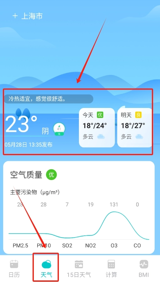 在软件界面里找到天气板块,点击进入后,即可查询到精准详细的实时及未来天气信息。
