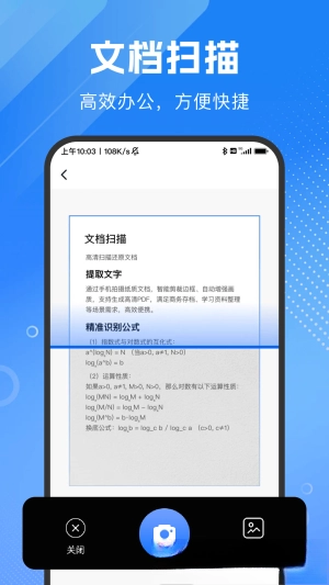 1. 支持文档与图片扫描功能,借助摄像头拍摄就能自动识别文档边缘、修正倾斜角度、提升画面对比度,从而生成清晰的扫描图像。
