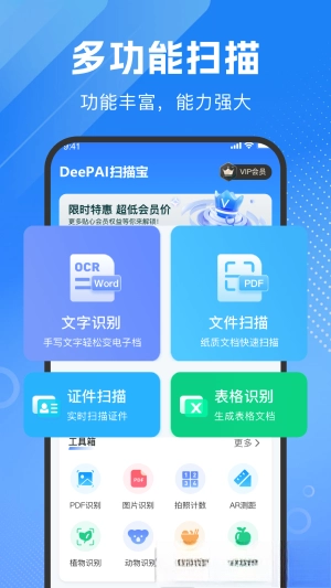 DeePAI扫描宝这款应用能把手机变成可随身携带的扫描仪和文本识别工具,它可以拍摄纸质文档并迅速将其转换为清晰且能够保存的电子文档,不管是合同、发票、教材还是手写笔记,都能够借助它快速生成PDF或者图片格式,便于存储、分享以及编辑,特别适合有随身扫描、资料整理或者移动办公需求的用户。