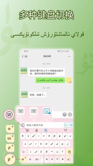 BAZAR维文输入法是一款专注于支持维吾尔文及多语言文字输入的手机输入法工具,它为有维文聊天、输入、翻译或文档书写需求的用户提供了更便捷的键盘选择,借助这款输入法,用户能够在手机上输入维吾尔文、拉丁维文、汉字、英文等多种文字,便于实现多语混合使用和文化语言交流。