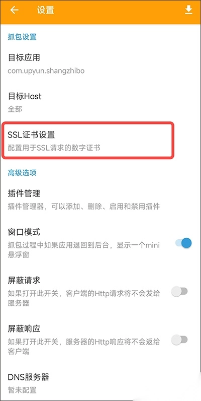 5、支持对抓包数据进行筛选、搜索,以及设置抓取指定应用和指定Host/IP。