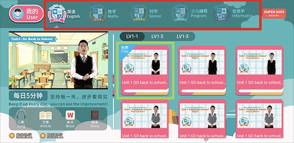 丰富多元的课程可自由切换,能充分满足孩子多方面的知识学习需求。