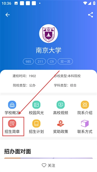 3、在院校详情页,点击【招生简章】选项,就能进入该院校的招生简章列表页面啦。