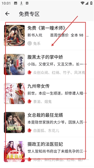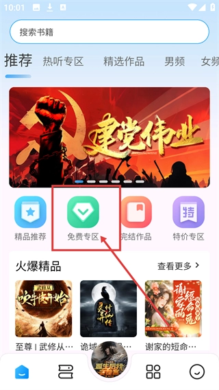 1、在首页点击【免费专区】选项,就能进入免费书籍列表页面,挑选自己感兴趣的听书内容了。