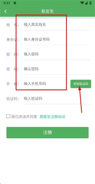 2、在注册页面填写信息后,点击获取验证码按钮。