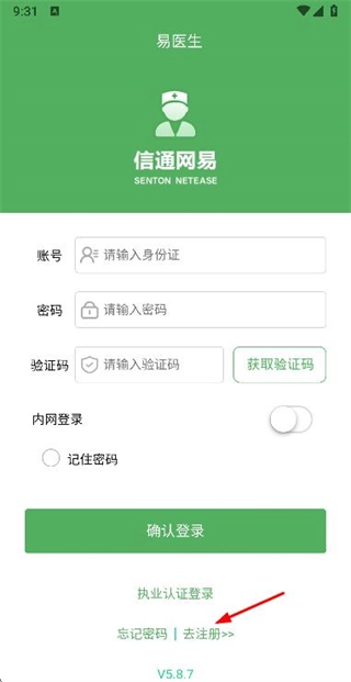 1、在易医生的登录页面中找到“去注册”选项并点击,即可进入注册页面。