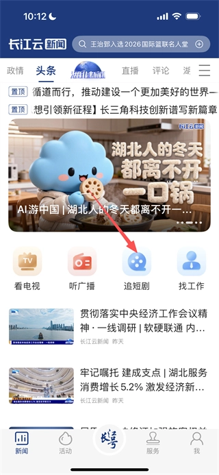 1、在长江云新闻首页找到并点击追剧选项,即可进入微短剧列表页面。